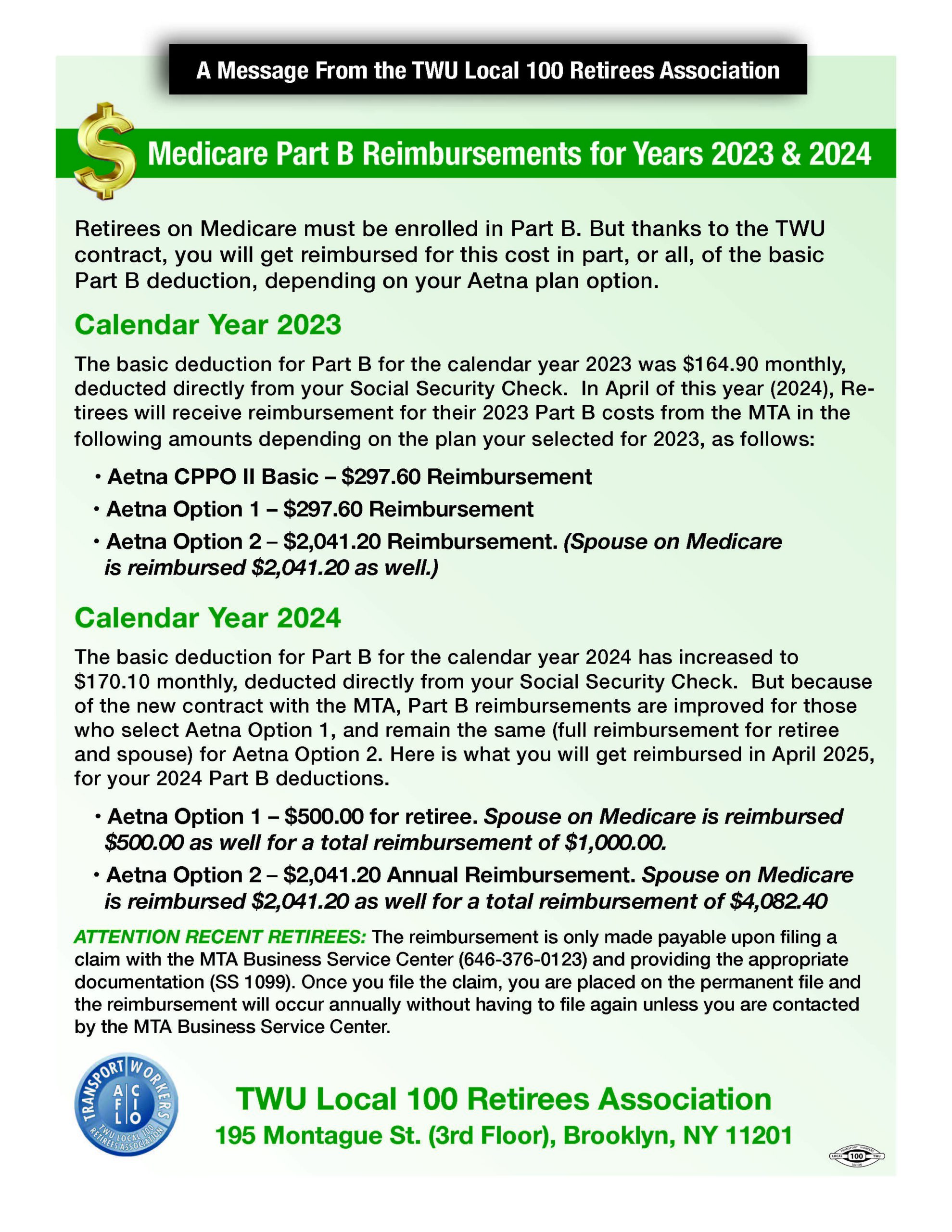 Retirees Will Receive Part B Reimbursements in April